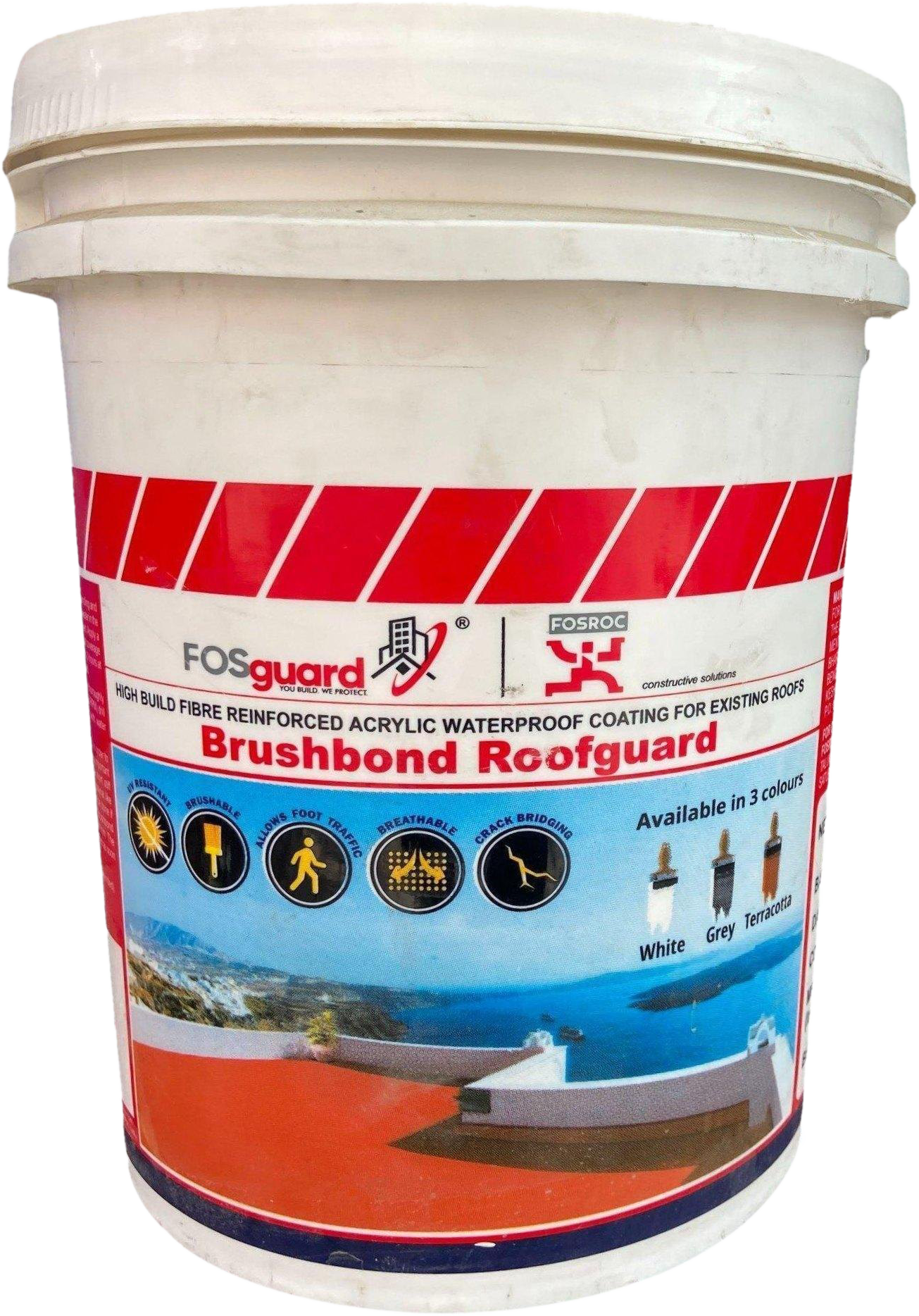 Fosroc Brushbond Roofguard is a high-build, fibre-reinforced acrylic elastomeric waterproofing coating specially designed for roofs.